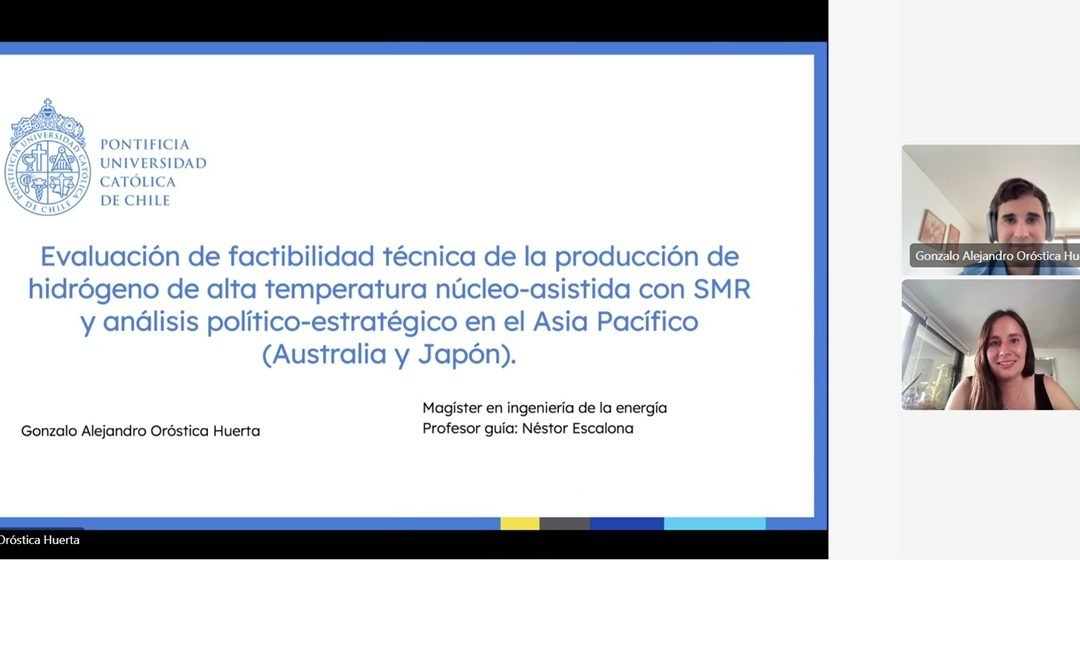 Con el título de su Actividad de Graduación: “Evaluación de factibilidad técnica de la producción de hidrógeno de alta temperatura núcleo-asistida con SMR y análisis político-estratégico en el Asia Pacífico (Australia-Japón)”, Gonzalo Alejandro Oróstica Huerta se convirtió en un nuevo graduado del Magíster en Ingeniería de la Energía de la Pontificia Universidad Católica de Chile.