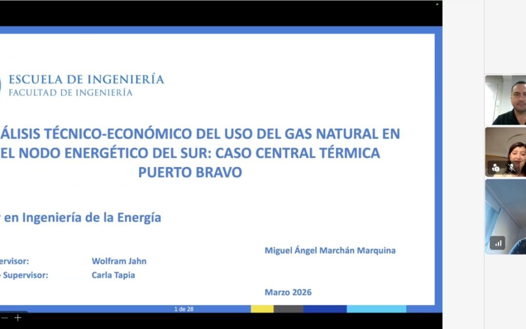Con el título de su Actividad de Graduación: “Análisis técnico-económico del uso del gas natural en el nodo energético del sur: caso central térmica Punta Bravo”, Miguel Ángel Marchán Marquina se convirtió en un nuevo graduado del Magíster en Ingeniería de la Energía de la Pontificia Universidad Católica de Chile.