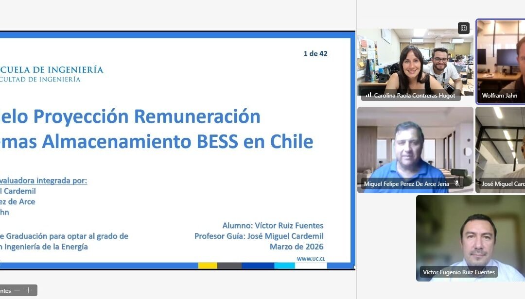 Con el título de su Actividad de Graduación: “Modelo de proyección de remuneración de sistemas de almacenamiento BESS en Chile”, Víctor Ruíz Fuentes se convirtió en un nuevo graduado del Magíster en Ingeniería de la Energía de la Pontificia Universidad Católica de Chile.